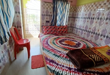 Enjoy a spacious double bed room with a serene ambiance and essential facilities for convenience.